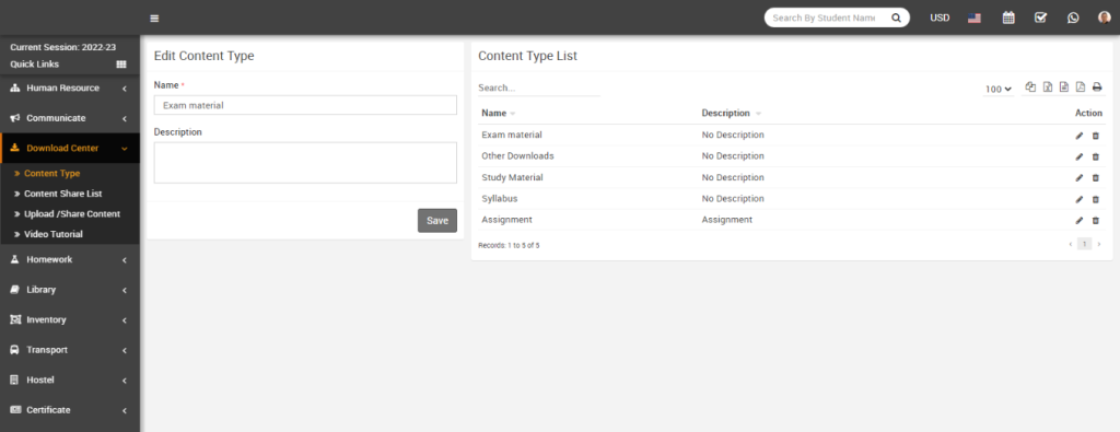 To add a content type, go to Download Centre > Content Type. Now enter the name of the specific content as well as a description of the content type, then click the Save button, your newly added content type will now appear in the content type list.