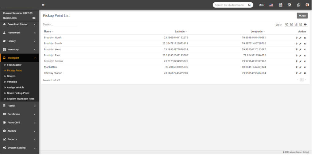 In an Institute Management System, a transport pickup point means the spot where students are collected by the school’s transport facility. It is mainly used to ensure safe and smooth travel for students between home and school, especially when they live at a considerable distance.