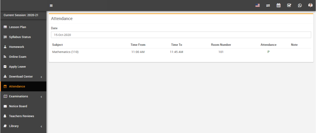 After login from student panel, go to sidebar menu click on Attendance. Here select Date and you can see all period wise date attendance report.