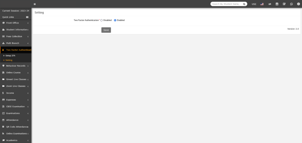 Note: When you install Two Factor Authentication in your FiNIMS School, it will show you default disabled, for using you have to enabled it.