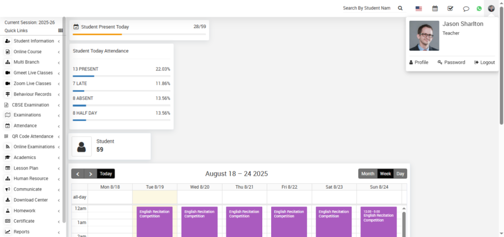 The advanced school management system, as of August 19, 2025, integrates Student Information and Online Course for streamlined education. Features like Gmeet and Zoom Live Classes, Attendance tracking, and Human Resource management enhance operational efficiency.